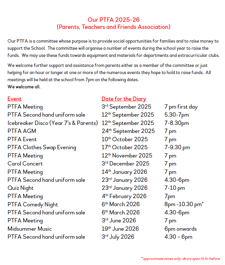 Our PTFA 2025-26