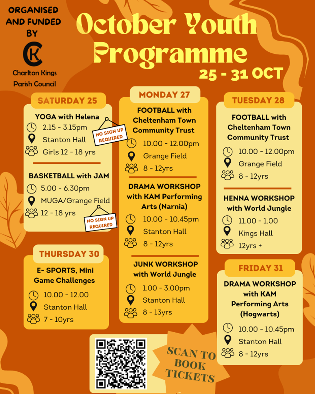 Balcarras is always represented at the Parish Council meetings on youth. This Wednesday evening Mr Constance went along to meet with parish councillors and other stakeholders to coordinate our efforts regarding supporting the young people of the village. The Parish Council arrange a variety of things over half term. See below for details.