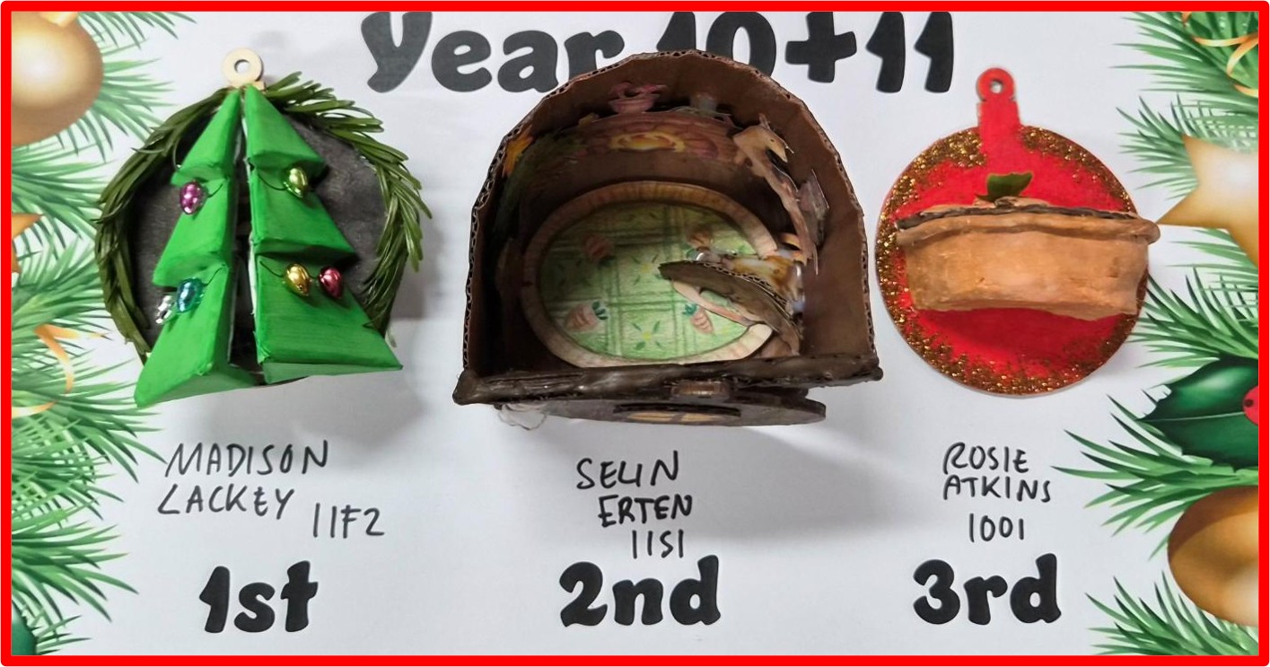 The school has completed this years bauble competition. All year groups were invited to take part through tutor groups. The judging was conducted by the schools SMT and pastoral team.