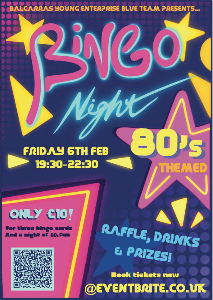 We are delighted to invite you to our second edition Bingo Night, an event organised by Young Enterprise - Blue Team in support of our project. Join us on a fun and relaxed evening while supporting our student-led business project. All funds raised will go directly towards developing our product.