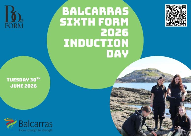 Students that have been given a conditional offer will be invited to attend the induction day on 30th June 2026, please put this date in your diary as it's a very useful and important morning where you get to sample lessons and meet teachers as well as learn about the many enrichment opportunities offered at Balcarras Sixth Form.