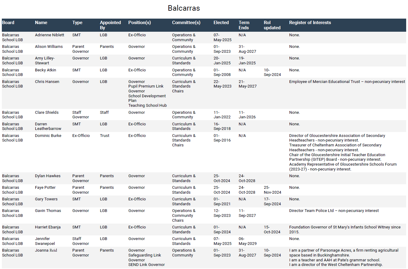 Balcarras LGB – Register of Governors