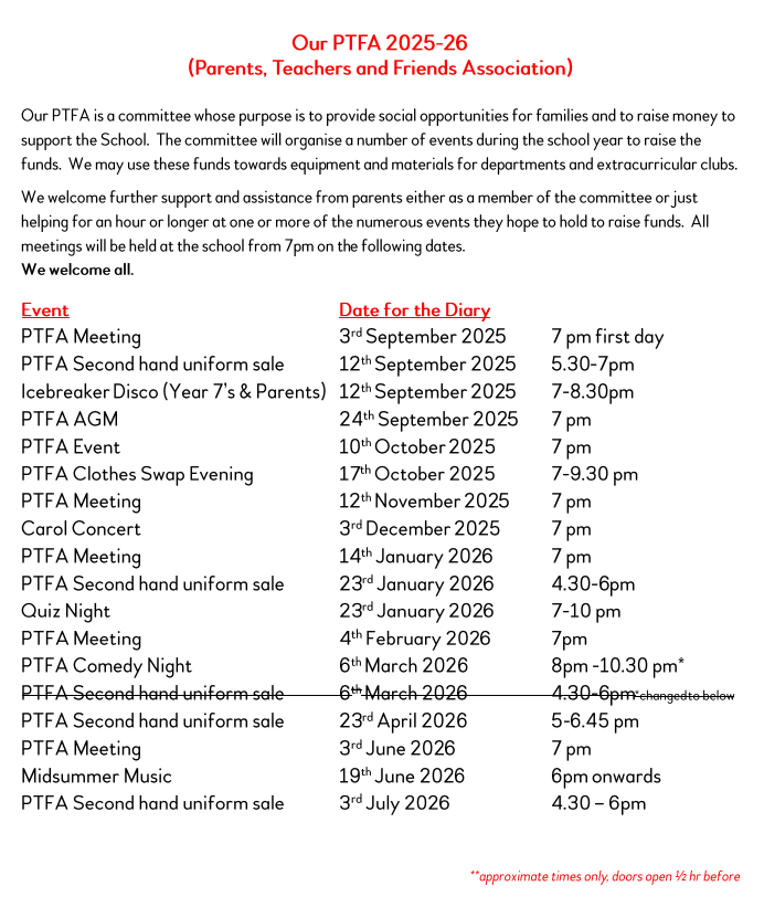 Please do come along and support the PTFA who are raising vital funds for the school.