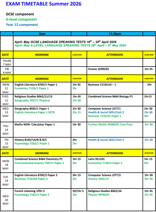 Click here for the Examinations newsletter for Summer 2026.