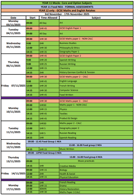 1. Year 11 Mock Timetable and GCSE resits November 2025»