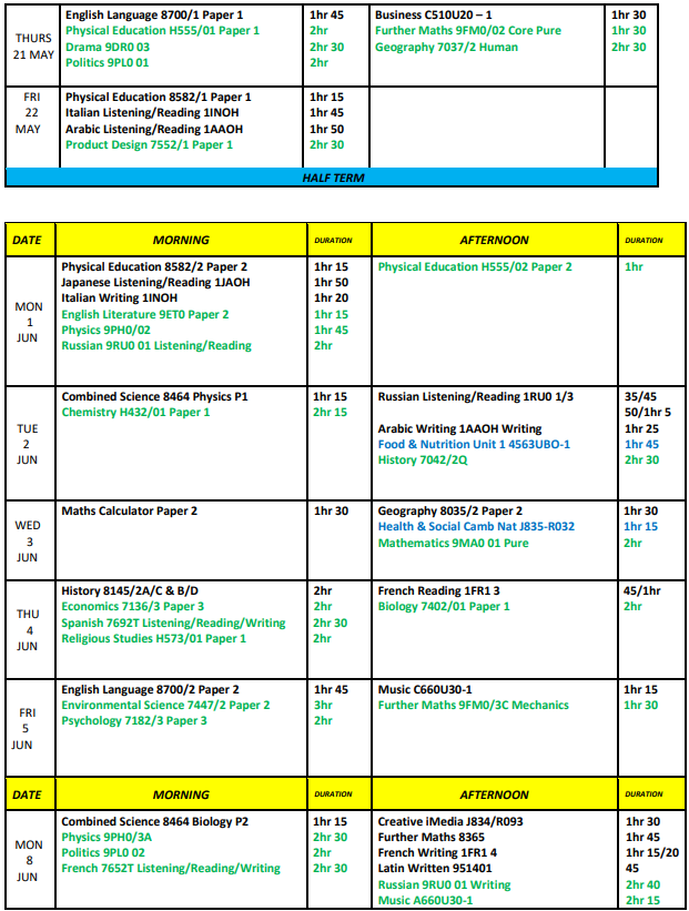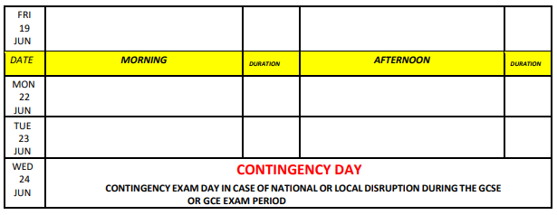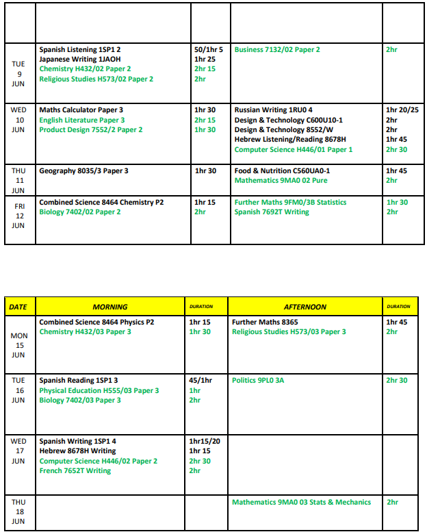 Exam timetable Summer Timetable