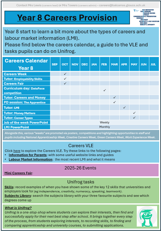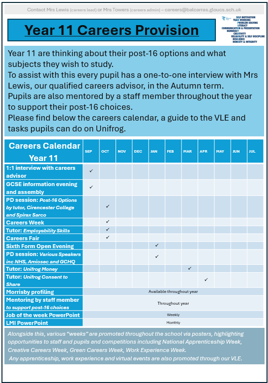 Careers is embedded across the curriculum, in everyday learning, with reference to employability skills and careers opportunities in every subject area. Additional information sources include partnership with local businesses and professionals, apprenticeship providers, employment agencies, educational institutions and national employer organisations as well as HE and FE providers. The school personal development curriculum also ensures a comprehensive delivery of content through our tutor programme too.